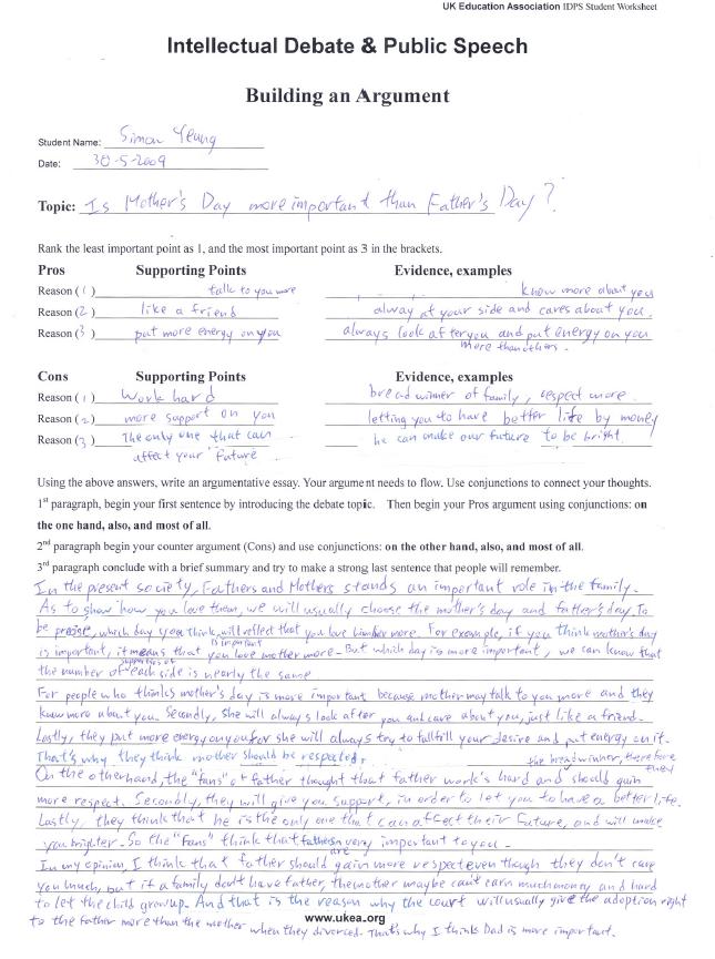Argumentative Writing: Is Mother's Day More Important than Father's Day? |